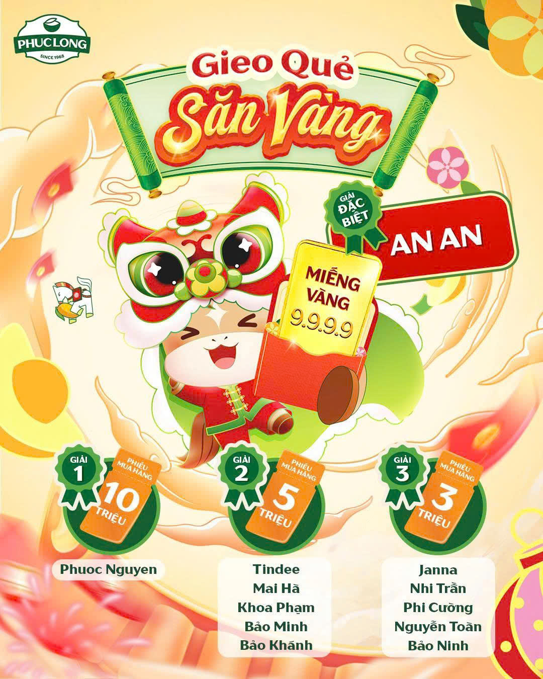 Phúc Long xin chúc mừng những chủ nhân sau đã nhận được những giải thưởng từ chương trình