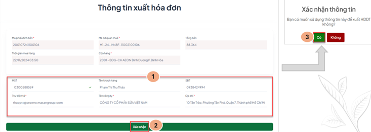 Bước 2: Nhập thông tin xuất Hóa đơn GTGT trong vòng 90 phút & trong ngày mua hàng để xuất hóa đơn